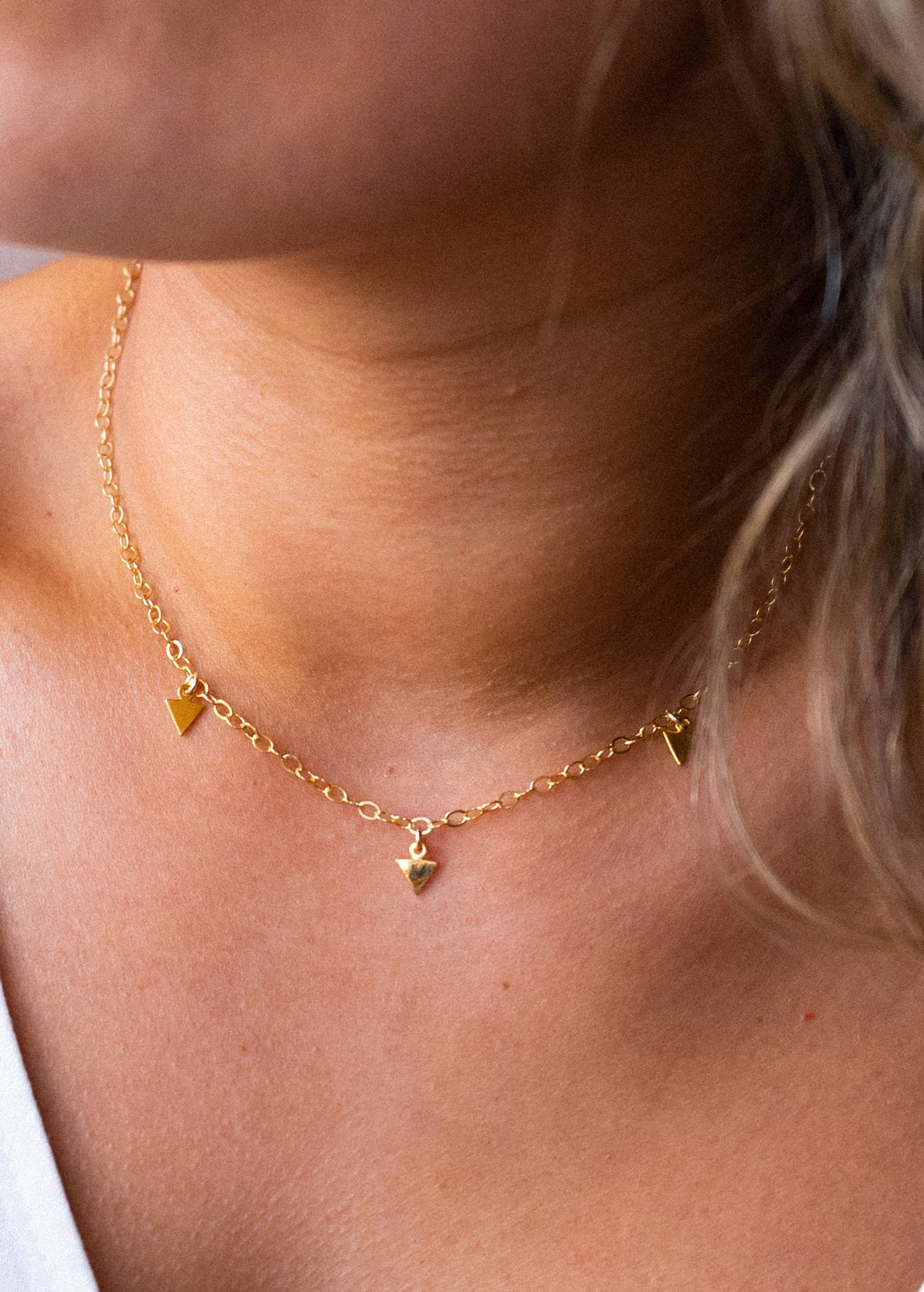 Here to remind you that you're on your own journey. The Gold Arrows Necklace features three tiny triangular arrow charms, complimented with a flat link chain. This piece can be worn alone or layered with other necklaces for a unique look.